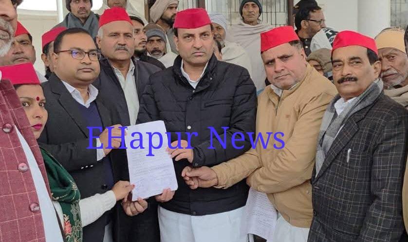 हापुड, सीमन (ehapurnews.com):जनपद हापुड के धौलाना विधानसभा क्षेत्र के किसानों की सिंचाई की समस्या को हल कराने की मांग लेकर बुधवार को सपा के जिलाध्यक्ष आनंद गुर्जर के साथ सपा नेताओ ने अपर जिला अधिकारी हापुड़ को एक ज्ञापन सौंपा।जिलाध्यक्ष ने कहा कि सपा किसानों और जवानों के हक की लड़ाई लड़ते रहेंगे।