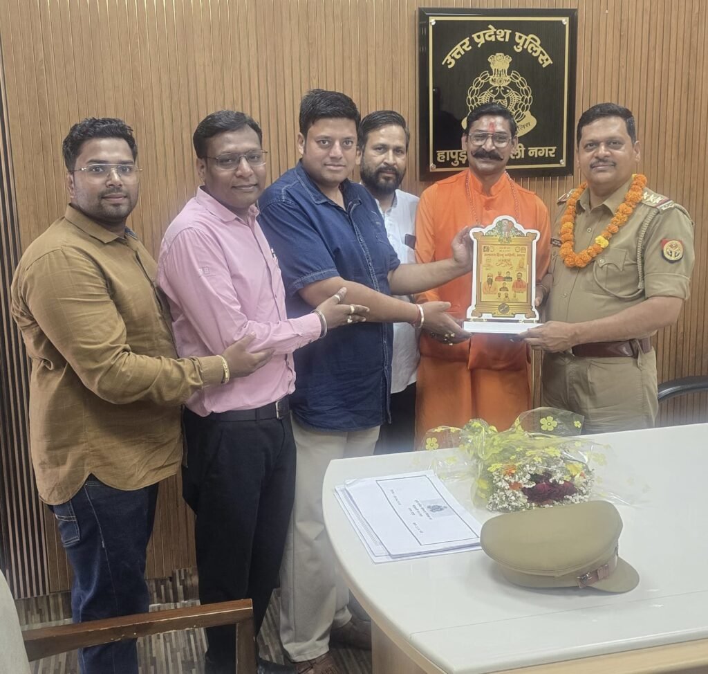 हापुड़, सीमन (ehapurnews.com): सनातन हिन्दू वाहिनी भारत हापुड़ जिला अध्यक्ष अमित कुमार महेश्वरी एवं उनके पद अधिकारियों ने हापुड़ कोतवाली के एस एच ओ को सम्मानित किया।