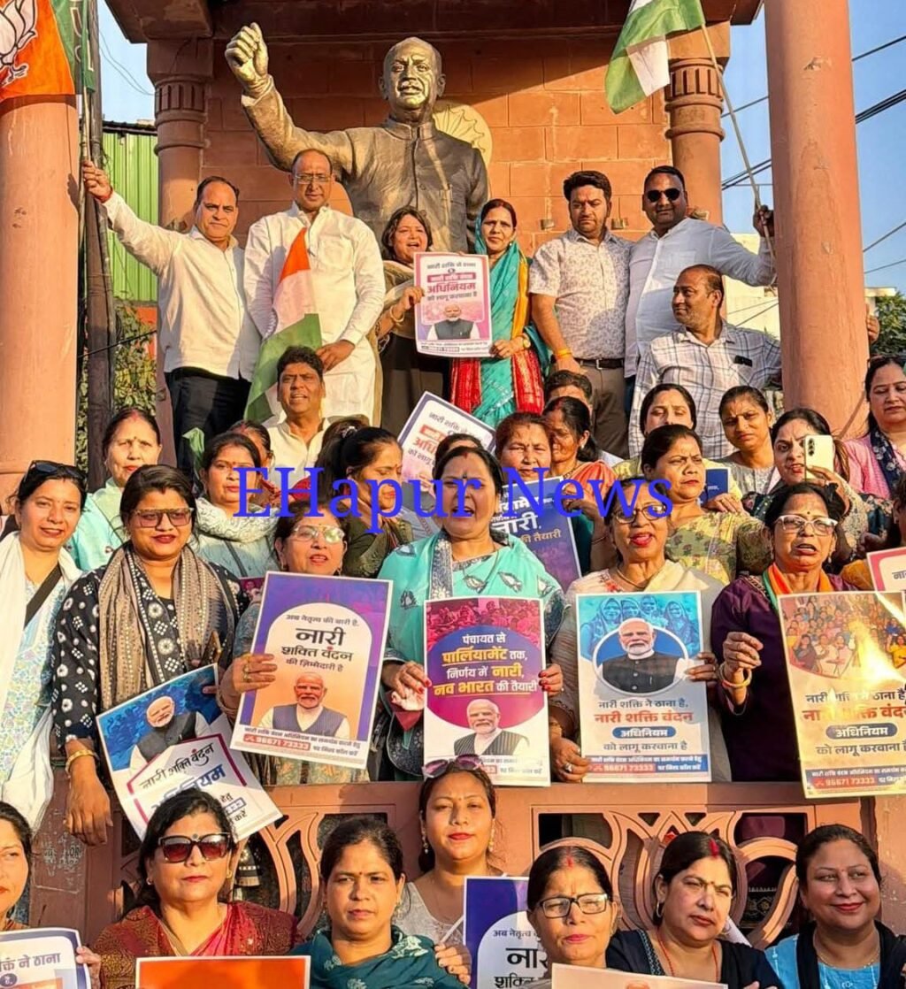 नारी सम्मान, सशक्तिकरण और भागीदारी के संकल्प के साथ नारी शक्ति वंदन अधिनियम अभियान के अंतर्गत भारतीय जनता पार्टी, हापुड़ में आयोजित स्कूटी यात्रा में भाजपा समर्थक महिलाए शामिल हुई।रेलवे पार्क से पंडित श्यामा प्रसाद मुखर्जी की प्रतिमा स्थल तक निकली इस उत्साहपूर्ण यात्रा में मातृशक्ति ने अद्भुत जोश, ऊर्जा और एकजुटता का परिचय दिया।