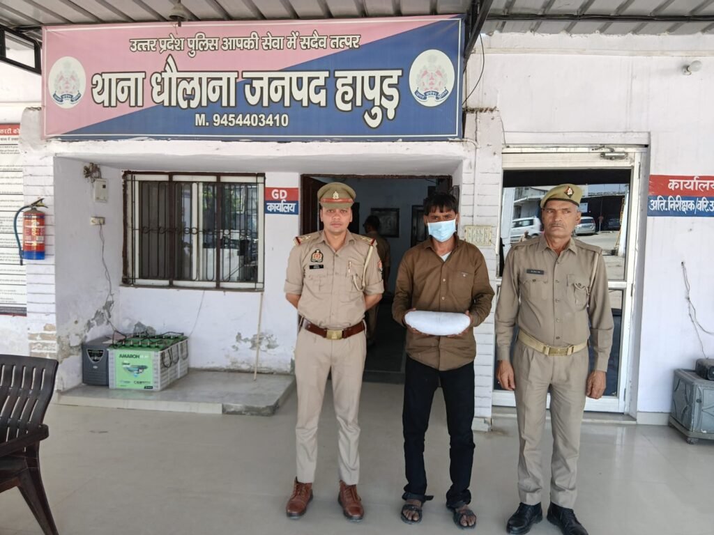 हापुड,सीमन (ehapurnews.com):हापुड़ पुलिस द्वारा जनपद में अपराध की रोकथाम एवं अवैध मादक पदार्थ तस्करों के विरूद्ध चलाए जा रहे अभियान के अन्तर्गत थाना धौलाना पुलिस ने एक मादक पदार्थ तस्कर को गिरफ्तार कर लिया जिसके कब्जे से एक किलो 250 ग्राम अवैध गांजा बरामद किया है।आरोपी गांव पिपलैडा का अबरार है।पुलिस ने आरोपी को जेल भेज दिया है।पूछताछ में आरोपी ने गांजा बेचना स्वीकार किया है।