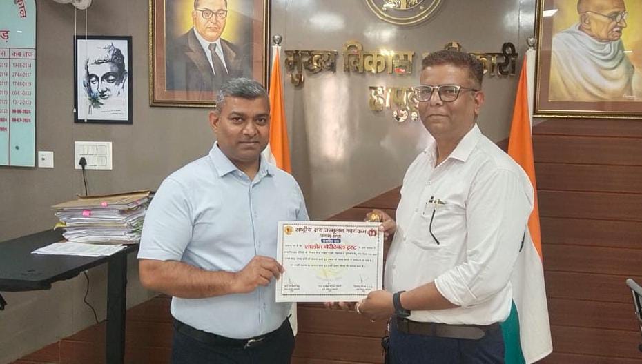 हापुड, सूवि(ehapurnews.com): जनपद हापुड़ के मुख्य विकास अधिकारी हिमांशु गौतम ने शालोम चेरिटेबल ट्रस्ट को क्षय उन्मूलन अभियान में उत्कृष्ट कार्य के लिए सोमवार को प्रशस्ति पत्र प्रदान कर सम्मानित किया।