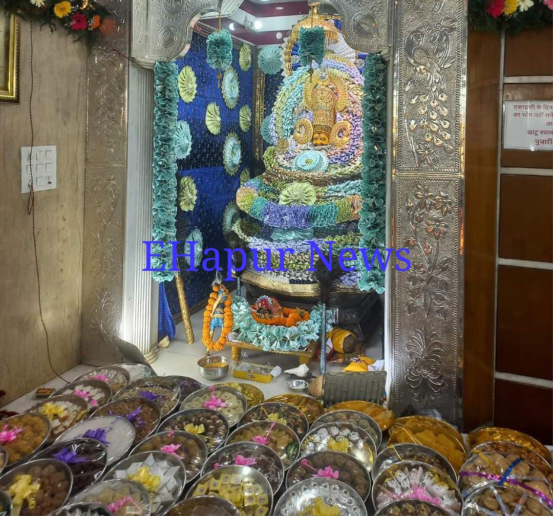 हापुड़, सीमन (ehapurnews.com): कलिकाल के परम आराध्य देव श्री श्यामप्रभु (खाटू) वाले का जन्मोत्सव देव उठान एकादशी पर श्री श्याम भक्त मण्डल (रजि), हापुड़ द्वारा बड़े ही धूमधाम के साथ मनाया गया। इसमें प्रातः श्री श्याम प्रभु को पोशाक अर्पण की गयी। साँय 6:00 बजे पूजन प्रारम्भ हुआ, जिसमें श्री दिनेश गर्ग सपरिवार यजमान रहे। हापुड़ शहर में पहली बार बंगलौर के कारीगरों द्वारा श्री श्यामप्रभु का महालक्ष्मी श्रृंगार किया गया एवं 56 भोग अर्पण किया गया। रात्रि श्याम प्रेमियों द्वारा संकीर्तन किया गया, जिसमें रसिक जनों ने सुन्दर-सुन्दर भजन गायें एवं बधाई उत्सव मनाया, दिल्ली से पधारी कविता माही ने सुन्दर-सुन्दर भजनों की वर्षा की। अनूपशहर से रोबिन भारद्वाज द्वारा भी भजनों की रसमयी गंगा बहायी गयी, जिस पर दर्शक झूमने को मजबूर हो गये। रात्रि को 12:00 बजे बाबा का केक काटकर जन्मोत्सव की बधाई दी गयी। तत्पश्चात आरती के बाद प्रसाद वितरण किया गया। मन्दिर को फूलों व लाईटों से सजाया गया। इस कार्यक्रम में प्रधान प्रमोद गर्ग, मन्त्री गौरीशंकर, संस्थापक सुनील पंसारी, प्रदीप कुमार (नमक वाले), नवीन अग्रवाल, सुरेश केडिया, अतुल गर्ग, सुनील कंसल (रूई वाले), यश कंसल, पीयूष गोयल, मयंक कंसल, पुनीत गर्ग, शिवांक सिंहल आदि उपस्थित थे।