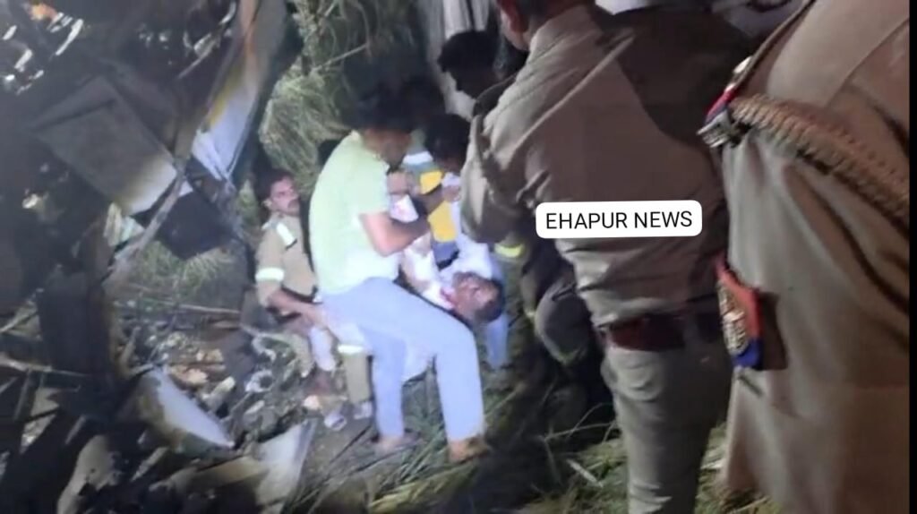 हापुड़, सीमन/रियाज़ अहमद (ehapurnews.com): जनपद हापुड़ के धौलाना तहसील क्षेत्र की गुलावठी रोड पर सोमवार की तड़के हुए दर्दनाक सड़क हादसे में छह लोगों की दर्दनाक मौत हो गई जबकि सात लोग घायल हैं। सूचना पर हापुड़ के डीएम अभिषेक पांडेय, हापुड़ के कप्तान कुंवर ज्ञानंज्य सिंह, सीएमओ डॉ. वेद प्रकाश, आसपास के थानों की फोर्स के साथ मौके पर पहुंचे और रेस्क्यू ऑपरेशन चलाया। इस दौरान क्षतिग्रस्त वाहनों में फंसे लोगों को बाहर निकाला गया। साथ ही मृतकों के परिजनों को सूचना दी गई जिससे परिवार में कोहराम मच गया।