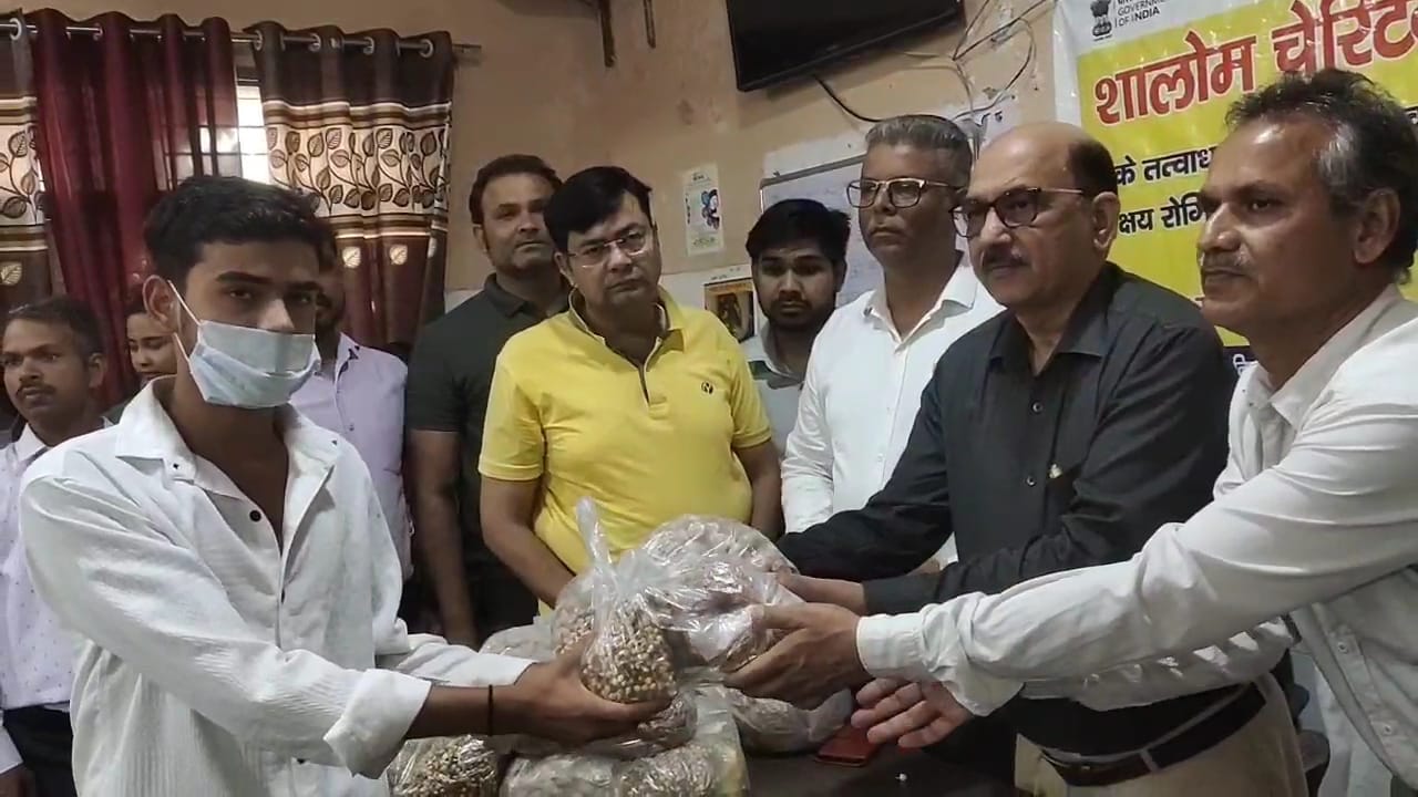 हापुड़, सीमन/अमित कुमार (ehapurnews.com): केंद्र और प्रदेश सरकार के टी० बी० मुक्त भारत अभियान में सहयोग देने के लिए जनपद हापुड़ की अनेक सामाजिक संस्थाएं आगे आई हैं, जो हर महीने टी० बी० रोगियों को प्रोटीन युक्त आहार वितरित कर अभियान में मदद कर रही है। अभियान की सहयोगी संस्थाओं में से एक संस्था है शालोम चेरिटेबल ट्रस्ट हापुड़, जो गत 9 माह से टी० बी० रोगियों को प्रोटीन युक्त आहार की पोटली वितरित कर 280 टी. बी० रोगियों को टी० बी० मुक्त किया जा चुका है। हापुड़ के प्राथमिक स्वास्थ्य केन्द्र पर सोमवार को शालोम चेरिटेबल ट्रस्ट ने 72 टी बी० रोगियों को गोद ले कर टी० बी० मुक्त भारत अभियान में एक खास भूमिका अदा की है। पोषक पोटली में रोगियों को प्रोटीन युक्त आहार चना, माइग्रेन आटा आदि दिया गया है।