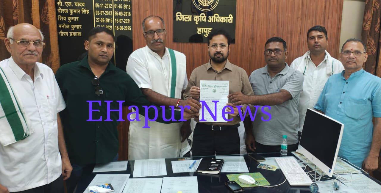 हापुड, सीमन (ehapurnews.com):भारतीय किसान यूनियन अराजनैतिक के एक किसान प्रतिनिधिमंडल ने बुधवार को जिला कृषि अधिकारी से भेंट कर नकली कीट नाशक दवा विक्रताओं के विरुद्ध कठोर कार्रवाई करने की मांग की है और किसानो ने मांग के समर्थन में एक ज्ञापन दिया।