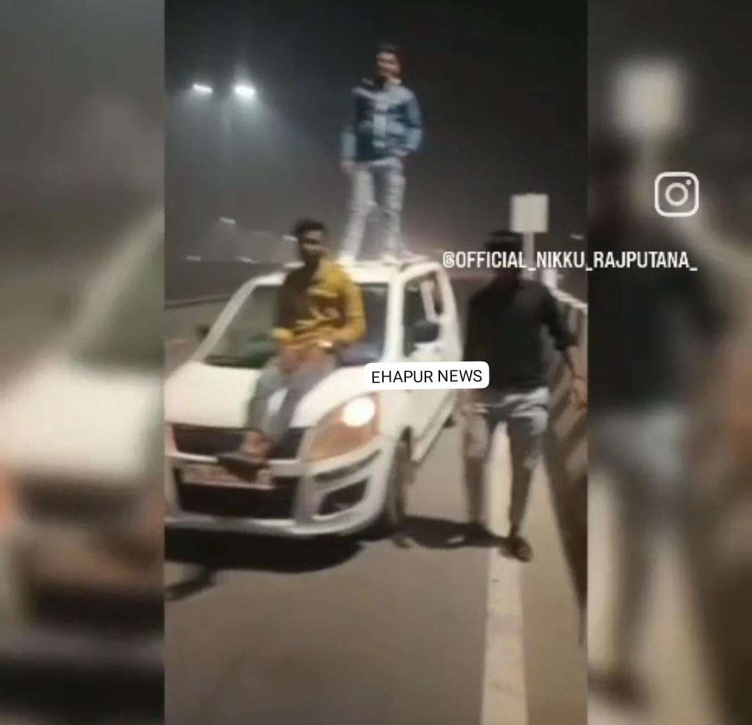 एक गाड़ी में सवार चार युवक जनपद हापुड़ के हाईवे पर पहुंचे जहां उन्होंने सड़क किनारे गाड़ी खड़ी की और खुलेआम स्टंट किया। हाईवे पर जमकर डांस किया। इस तरह की हरकत करना कानून का उल्लंघन है। तेज रफ्तार वाहन से हादसे की संभावना भी बनी रहती है। मामले में उचित कार्रवाई होनी चाहिए।