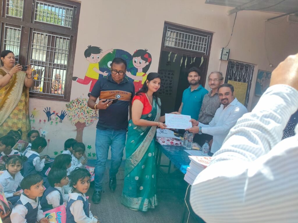 लायंस क्लब प्लेटिनम द्वारा बच्चों को गणित एवं कला की किताबें भेंट की गई। शिक्षा भारती संस्कार केन्द्र गोयना ग्राम एवं दस्तोई ग्राम की इंचार्ज टीचर द्वारा अशिक्षित अभिभावको को नाम लिखना सिखाने पर रविन्दी एवं पूनम शर्मा को हापुड़ विकास अधिकारी द्वारा प्रशस्ति पत्र एवं उपहार प्रदान किया गया। हापुड़ विकास अधिकारी द्वारा लिखना सिखने वाले अभिभावकों को उपहार स्वरूप एक एक स्वास्थ्य किट दी गई जिसमें नेलकटर, नहाने का बड़ा साबुन,शैम्पू आदि वस्तुएं थी। क्लब सदस्यों ने दस्तोई इंचार्ज टीचर को केन्द्र के बच्चों के लिए गणित एवं कला की किताबें भेंट की।मुख्य अतिथि को केन्द्र द्वारा विद्यालय वार्षिक पत्रिका भेंट की गई।