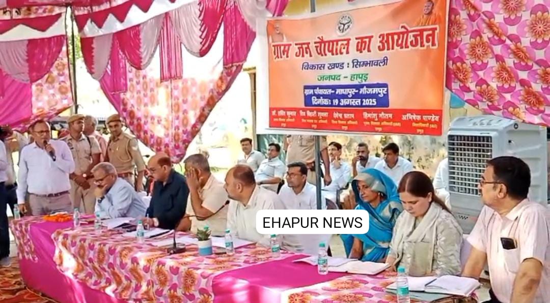 हापुड़, सीमन/अमित कुमार (ehapurnews.com): जनपद हापुड़ के थाना सिंभावली ब्लॉक के गांव माधापुर मौज्जपुर में मंगलवार को जिलाधिकारी हापुड़ अभिषेक पांडे ने जन चौपाल का आयोजन किया। इस अवसर पर ग्रामीणों ने अपनी-अपनी समस्याओं से जिलाधिकारी को अवगत कराया। जिलाधिकारी ने समस्या सुनने के पश्चात सभी को समस्याओं के शीघ्र से शीघ्र समाधान का आश्वासन दिया।