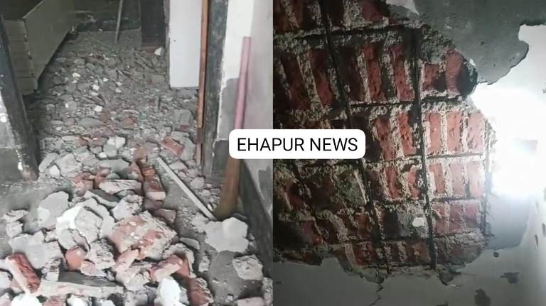 हापुड़, सीमन/रियाज़ अहमद (ehapurnews.com): जनपद हापुड़ के पिलखुवा के कोतवाली क्षेत्र के गांव परतापुर में मकान की छत का कुछ हिस्सा गिरने से परिवार बाल-बाल बच गया। इस दौरान चीख पुकार मच है। परिवार के मुखिया इस्लामुद्दीन ने बताया कि रविवार की सुबह 9 बजे जब परिवार के दो बच्चे और दिव्यांग पत्नी घर में सो रहे थे तो अचानक से छत का कुछ हिस्सा गिर गया। हादसे के दौरान परिवार के दो मासूम बच्चे और दिव्यांग पत्नी बाल-बाल बच गई। इस दौरान परिवार का थोड़ा नुकसान हुआ है।