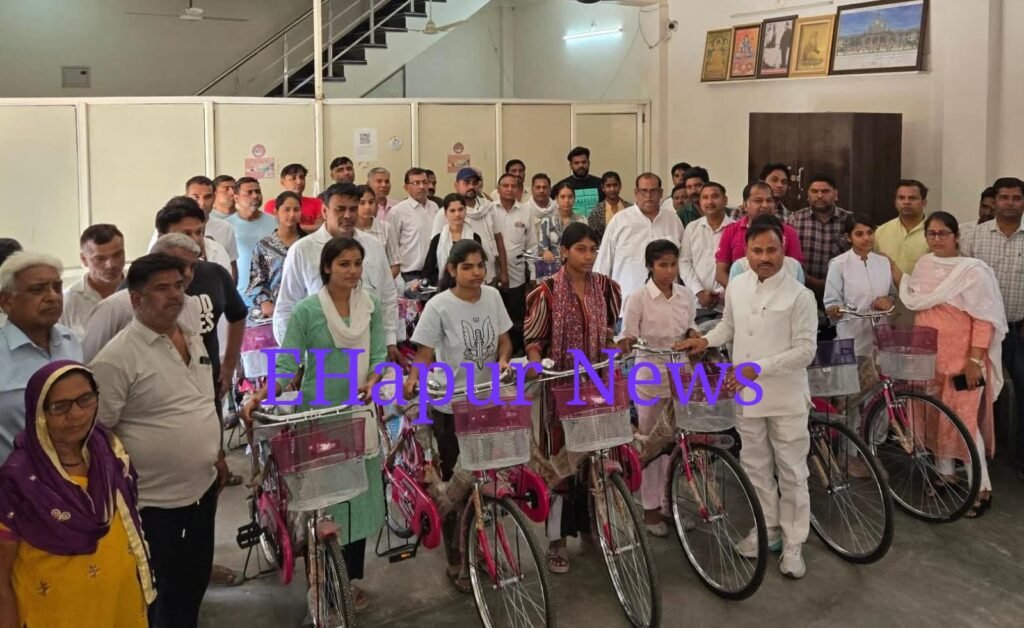 हापुड विधायक विजयपाल आढती ने सोमवार को कैम्प कार्यालय पर छात्राओ को साइकिल वितरित की ताकि छात्राओ को आने-जाने कम समय लगे और वे अपना समय विद्या अध्ययन में अधिक दे सकें।विधायक ने छात्राओ से कहा कि वे मन लगाकर पढे और अच्छे नम्बर लाकर योग्यता सिध्द करे ताकि अन्य भी प्रेरणा ले सके।