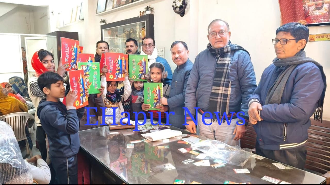 हापुड़ सीमन (ehapurnews.com):हापुड विधानसभा क्षेत्र से भाजपा विधायक विजयपाल आढती ने शुक्रवार को कैम्प कार्यालय पर आए बच्चों को कापियां एवं स्टेशनरी आदि वितरित की।विधायक ने कहा कि सभी बच्चे मन लगाकर पढ़ें और बड़े अफसर बनें।