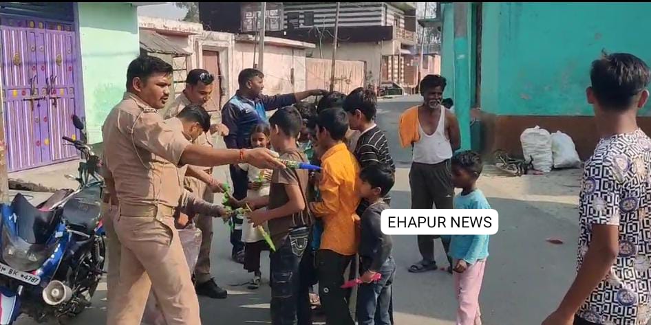 हापुड़, सीमन (ehapurnews.com): जनपद हापुड़ के गढ़मुक्तेश्वर कोतवाली क्षेत्र की ब्रजघाट चौकी के प्रभारी इंद्रकांत यादव ने बच्चों के बीच जाकर उन्हें होली की शुभकामनाएं व उपहार दिए। अपने बीच पुलिस को पाकर बच्चों की खुशी का ठिकाना ना रहा जिन्होंने पुलिस का आभार जताया। इस दौरान चौकी प्रभारी ने बच्चों को पिचकारी, गुलाल के पैकेट आदि वितरित किए।