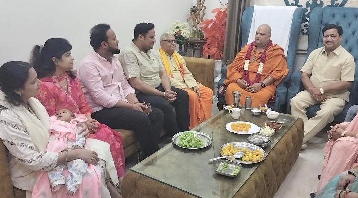 हापुड़, सीमन/ पंकज कश्यप (ehapurnews.com): हापुड़ के नवज्योति कॉलोनी में पूर्व डीजीसी क्राइम एडवोकेट कृष्णकांत गुप्ता के निवास पर पूज्यपाद जगदगुरु रामानन्दाचार्य स्वामी श्रीराम दिनेश आचार्य जी महाराज का जय श्री राम के उद्घोष के साथ स्वागत किया गया। पूज्यपाद जगदगुरु रामानन्दाचार्य स्वामी श्री राम दिनेश आचार्य जी महाराज ने इस दौरान कहा कि धर्म और मानवता के संदेश के लिए सबसे बड़े प्रेरक श्री राम हैं। आज के इस युग में समाज को समरसता की स्थापना के लिए श्री राम कथा प्रासंगिक है। क्रांति के अक्रांत माहौल में भारत विश्व शांति देने का काम करता है। भारत के पास श्री राम हैं, उनका चरित्र है। राम जी ने धर्म का पालन किया है।