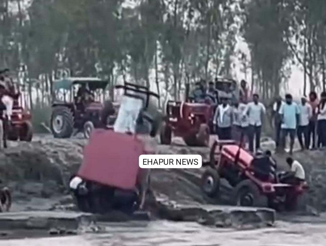 जनपद हापुड़ की तीर्थ डिग्री गढ़मुक्तेश्वर में बड़ी संख्या में श्रद्धालु कार्तिक मेले में गंगा स्नान के लिए पहुंच रहे हैं। ऐसे में पुलिस-प्रशासन की सख्ती के बावजूद भी कुछ लोग स्टंट करते हुए नजर आ रहे हैं। स्टंट बाजी के दौरान एक ट्रैक्टर पलट गया जिससे चीख पुकार मच गई।