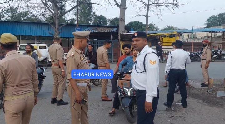 हापुड़, सीमन/संजय कश्यप (ehapurnews.com) : हापुड़ के विभिन्न क्षेत्रों में यातायात पुलिस ने शनिवार की शाम चेकिंग अभियान चलाया और नियम विरुद्ध दौड़ने वाले वाहनों के खिलाफ शिकंजा कसा। यातायात क्षेत्राधिकार राहुल यादव व यातायात प्रभारी नरेश कुमार जनपद हापुड़ के विभिन्न क्षेत्रों में उतरे। हापुड़ की मेरठ रोड पर स्थित आवास विकास पर बाइक वाले पुल पर भी यातायात पुलिस ने स्थानीय पुलिस के साथ अभियान चलाया और जमकर चालान काटे। इस दौरान पुलिस ने नियमों का उल्लंघन करने वालों को सख्त हिदायद दी। कि लापरवाही बर्दाश्त नहीं की जाएगी। ऐसा करने वालों के खिलाफ शिकंजा कसा जाएगा। इस दौरान यातायात पुलिस की कार्रवाई से अफरा-तफरी मची रही।