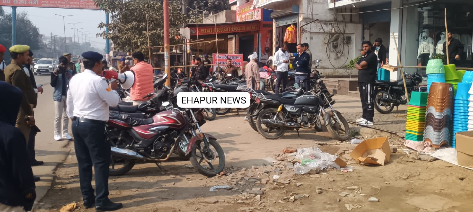 आपको बता दें कि हापुड़ के मेरठ तिराहा, गाय वाले मंदिर के आसपास अतिक्रमण रहता है। पहले तो दुकानदार दुकानों को बाहर निकालते हैं, फिर वाहन खड़े होते और उसके आगे ठेले वाले ठेला लगाते हैं जिससे जाम की स्थिति बनी रहती है। यहां अक्सर यातायात पुलिसकर्मी तैनात रहते हैं लेकिन उच्च अधिकारियों के निर्देश पर आखिर यातायात पुलिस हरकत में आई और कड़ी कार्रवाई की।