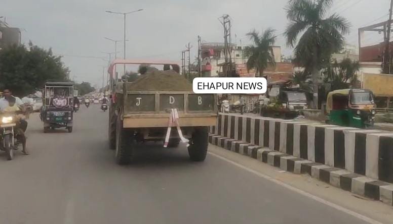 हापुड़, सीमन (ehapurnews.com): हापुड़ में नियमों के खिलाफ निर्माण सामग्री का परिवहन हो रहा है। बिना नंबर प्लेट की ट्रैक्टर-ट्रालियां हापुड़ की सड़कों से होकर गुजरती हैं जो कि खुले में ही निर्माण सामग्री को ले जाते हैं। ऐसे में प्रदूषण बढ़ता है और लोगों के स्वास्थ्य पर विपरीत असर भी पड़ता है। क्षेत्रवासी कई बार संबंधित विभाग का ध्यान इस ओर दिला चुके लेकिन कोई भी कार्रवाई करने को तैयार नहीं है।
