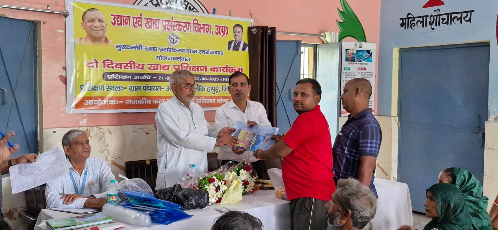 हापुड, सूवि(ehapurnews.com):प्रभारी राजकीय फल संरक्षण एवं प्रशिक्षण केन्द्र, आवास विकास कालौनी, हापुड द्वारा ग्राम पंचायत-अनवरपुर, ब्लाक- हापुड, जनपद हापुड में दिनांक 21.08.2025 से 22.08.2025 तक मुख्यमंत्री खाद्य प्रसंस्करण ग्रामीण स्वरोजगार योजनान्तर्गत 2 दिवसीय खाद्य प्रसंस्करण प्रशिक्षण का आयोजन किया गया। कार्यक्रम का शुभारम्भ ग्राम प्रधान श्री नरेश चन्द्र जी एवं प्रधानाचार्य राजकीय खाद्य विज्ञान प्रशिक्षण केन्द्र, मेरठ मण्डल मेरठ द्वारा संयुक्त रूप से फीता काटकर एवं प्रशिक्षण प्राप्त करने आये प्रशिक्षार्थियों को लेखन साम्रगी वितरण कर किया गया। श्री रमेश चन्द, प्रधानाचार्य द्वारा खाद्य प्रसंस्करण के अन्तर्गत आने वाले उद्योगों से सम्बन्धित जानकारी एवं प्रशिक्षण उपरान्त खाद्य प्रसंस्करण उद्योग स्थापित करने पर 50 प्रतिशत (अधिकत्तम एक लाख) रूपये अनुदान सम्बन्धित जानकारी प्रदान की गयी। विषय विशेषज्ञ श्री सुरेश शर्मा सेवानिवृत खाद्य प्रसंस्करण अधिकारी द्वारा फल सब्जी से बनने वाले उत्पाद जैसे अचार, सॉस, मुरब्बा, जैम, जैली स्क्वैश, मसाले प्रसंस्करण आदि की जानकारी प्रदान की गयी। श्री रोशनलाल प्रबंधक कैनरा बैंक ने लोन, प्रोजेक्ट रिपोर्ट तैयार करने आदि की जानकारी प्रदान की गयी। श्री सुशील कुमार सिरोही, प्रभारी द्वारा प्रधानमंत्री सूक्ष्म खाद्य प्रसंस्करण उद्योग उन्नयन योजना (पी.एम. एफ.एम.ई.) के अन्तर्गत 35 प्रतिशत अनुदान अधिकतम दस लाख रूपये अनुदान से सम्बन्धित जानकारी प्रदान की गयी। कार्यक्रम में 30 लाभार्थीयों ने प्रतिभाग किया।
