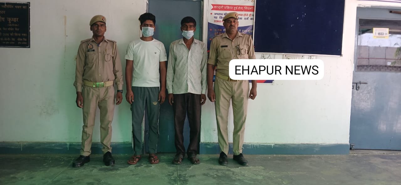 हापुड़, सीमन/अमित कुमार (ehapurnews.com):जनपद हापुड़ के थाना हापुड देहात पुलिस ने शनिवार को दहेज हत्या के मुकदमे में वांछित दो अभियुक्तों को गिरफ्तार किया गया। गिरफ्तार किए गए दोनों आरोपियों को पुलिस ने जेल भेज दिया है। मामला गांव काठी खेड़ा से जुड़ा है जहां नवविवाहित राखी की लाश मिली थी। मृतका के मायके पक्ष के लोगों ने ससुरालियों पर दहेज हत्या का आरोप लगाया था जिसके बाद पुलिस ने मामले में कार्रवाई करते हुए राखी की मौत में आठ पर मुकदमा दर्ज किया और अभियुक्त रितिक पुत्र रामेन्द्र उर्फ राजेन्द्र उम्र करीब 22 वर्ष तथा रामेन्द्र उर्फ राजेन्द्र पुत्र लटूर सिंह उम्र करीब 60 वर्ष नि0गण ग्राम काठी खेडा थाना हापुड देहात को गिरफ्तार किया है।