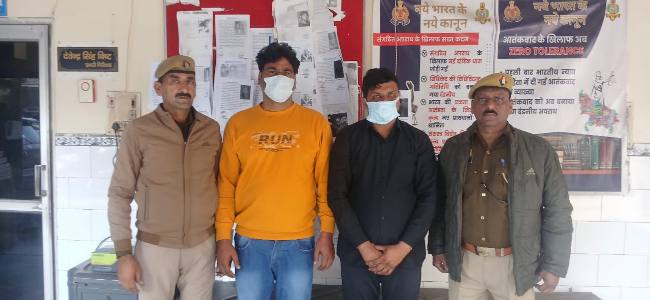 हापुड सीमन (ehapurnews.com ):हापुड पुलिस द्वारा जनपद में अपराध की रोकथाम एवं वांछित अभियुक्तों की गिरफ्तारी हेतु चलाए जा रहे अभियान के अन्तर्गत थाना हापुड़ नगर पुलिस ने कूटरचित दस्तावेज तैयार कर बैंक से लोन प्राप्त करने के मामले में फरार व वांछित चल रहे दो अभियुक्तों को गिरफ्तार कर लिया।आरोपी गांव हिम्मत पुर के शोकेन्द्र व विपिन गुर्जर है।पुलिस ने दोनो को जेल भेज दिया है।