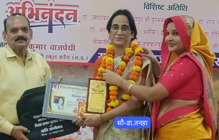 हापुड, वि(ehapurnews.com):माँ शिवरानी स्मृति साहित्य संस्थान करैरा शिवपुरी मध्य प्रदेश के तत्वावधान में 26 अक्टूबर-25 को आयोजित एक समारोह में आर्य कन्या स्नातकोत्तर महाविद्यालय, हापुड़ के शारीरिक शिक्षा विभाग की प्रो. (डॉ.) सरोजिनी ‘तनहा’ को उनकी कृति “बिन माँगे मोती” कथा संग्रह के लिये समारोह के अतिथियों ने”निराला सम्मान” प्रदान किया। माँ शिवरानी स्मृति साहित्य संस्थान के अध्यक्ष रमेश चन्द्र वाजपेयी ने बताया कि सम्मान में डॉ. तनहा को शाल, सम्मान पत्र स्मृति चिह्न, बैग तथा माँ बगलामुखी चालीसा की पुस्तक प्रदान की गयी।