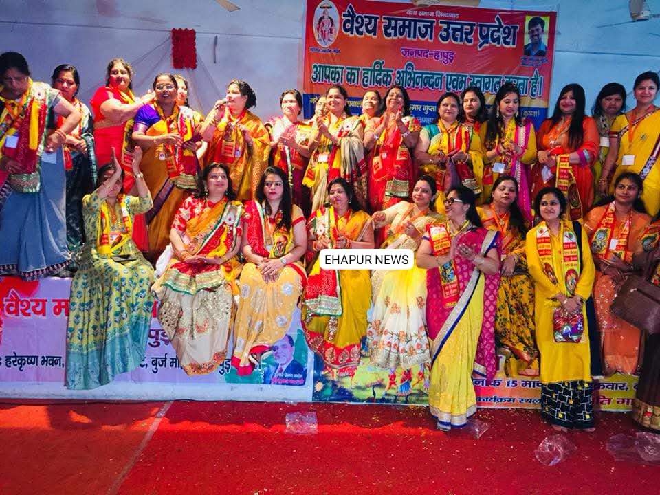 हापुड़, सीमन (ehapurnews.com): वैश्य समाज महिला उत्तर प्रदेश द्वारा श्री राम जन्मभूमि मंदिर में धर्म ध्वज फहराए जाने पर सामूहिक नृत्य एवं कीर्तन का आयोजन किया गया जिसमें सभी सदस्यों ने झूम-झूम कर श्री राम व श्री सीता के विवाह के उपलक्षय में मधुर गीत गाए। इस अवसर पर माहौल पूरी तरह भक्ति के रंग में रंग गया।
