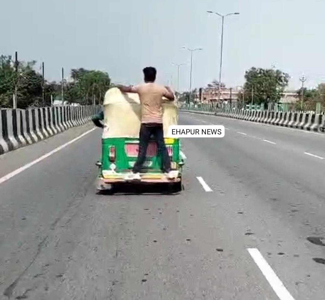 हापुड़, सीमन/संजय कश्यप (ehapurnews.com): जनपद हापुड़ के पिलखुवा कोतवाली क्षेत्र में एक युवक ऑटो के पीछे लटककर यात्रा करता हुआ दिखाई दिया। जिंदल नगर के सामने की यह तस्वीर अपने आप में चिंताजनक है। यातायात नियमों का उल्लंघन करने पर लोगों ने ऑटो चालक पर कार्रवाई की मांग की है। इस वीडियो सोशल मीडिया पर जमकर वायरल हो रही है।