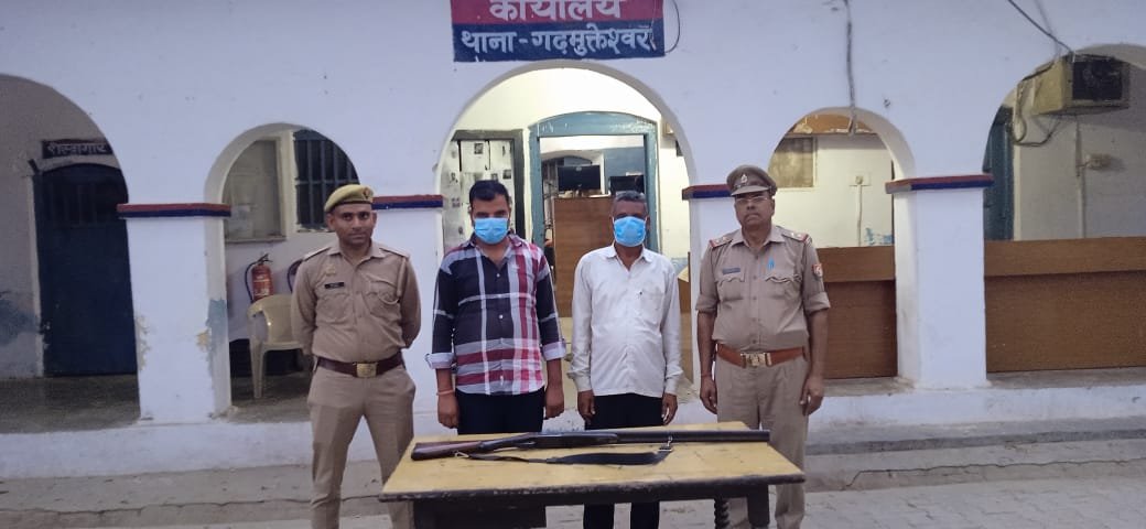 हापुड पुलिस द्वारा जनपद में अपराध की रोकथाम एवं वांछित अभियुक्तों की गिरफ्तारी हेतु चलाए जा रहे अभियान के अन्तर्गत थाना गढमुक्तेश्वर पुलिस ने लाइसेंसी बंदूक से फायरिंग करते हुए वीडियो/रील बनाने की घटना में संलिप्त दो अभियुक्तों को गिरफ्तार कर लिया।आरोपी गढ़मुक्तेश्वर केबागर शाहपुर के गंगा फार्म हाउस के सुपर वाइजर नवीन व अमरोहा के बाटूपुरा का गजराज सिंह है।पुलिस ने लाइसेंस वाली बंदूक भी बरामद की है।पुलिस ने दोनो को जेल भेज दिया है।