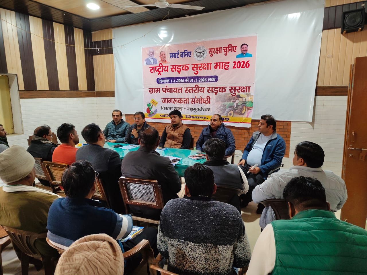 हापुड़, सीमन/ अमित कुमार (ehapurnews.com): जनपद हापुड़ के विकास खंड गढ़मुक्तेश्वर में ग्राम प्रधान और ग्राम पंचायत सदस्यों के साथ सड़क सुरक्षा संगोष्ठी आयोजित की गई जिसमें उन्हें यातायात नियमों की जानकारी के साथ-साथ सड़क दुर्घटना कैश लेस योजना, राहवीर योजना, हिट एंड रन योजना के बारे में जानकारी दी गई। यह भी कहा गया कि सड़क सुरक्षा अग्रदूत की भूमिका निभाते हुए अपनी-अपनी ग्राम सभा के सभी नागरिकों को सड़क सुरक्षा के प्रति जागरूक करें। उपस्थित लोगों द्वारा परिवहन विभाग से संबंधित प्रश्नों का समाधान किया गया। यह भी बताया गया कि किस प्रकार ऑन लाइन माध्यम से परिवहन विभाग से संबंधित कार्य घर बैठे ही कर सकते है।