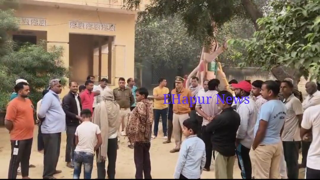हापुड़, सीमन/संजय कश्यप (ehapurnews.com): हापुड़ कोतवाली के गांव गोयना में स्थित श्री हनुमान मंदिर में किन्ही लोगों ने हनुमान जी की मूर्ति खंडित करके खेत में फैंक दी जिस वजह से ग्रामीणों में रोष व्याप्त है। सूचना पर पुलिस प्रभारी निरीक्षक देवेंद्र बिष्ट पुलिस बल के साथ मौके पर पहुंचे।