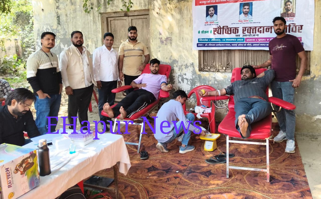 हापुड़, सीमन (ehapurnews.com): हापुड़ के नौजवानों की एक टीम ने हापुड़ में रविवार को स्वैच्छिक रक्तदान शिविर का आयोजन किया। यह शिविर आदर्श नगर कॉलोनी में डॉक्टर भीमराव अंबेडकर भवन परिसर में आयोजित किया गया। शिविर में आए अनेक युवकों ने स्वेच्छा से रक्तदान कर अन्य लोगों को प्रेरित किया।